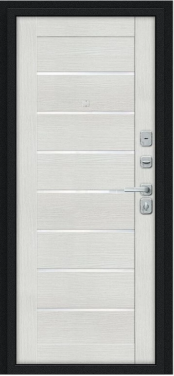 Дверь Браво Техно/BChrome Букле черное/Bianco Melinga - недорогая эконом класса по цене 4 367 руб., отлично подходит для временной установки в квартиру под сдачу, строительство, ремонт. Не смотря стоимость, модель хорошего качества.