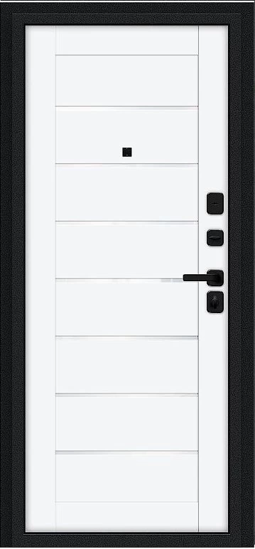 Надежная входная Дверь Браво Техно/SBlack Букле черное/White Silk премиум класса по цене 35 067 руб. Большая толщина стали защитит от проникновения в ваш дом, квартиру или коттедж. Используется очень качественная фурнитура: замки, цилиндры, ручки, защелки. Покрытие и отделка двери изготовлено под внимательным контролем производителя. Дверь имеет долгий срок службы и гарантию.
